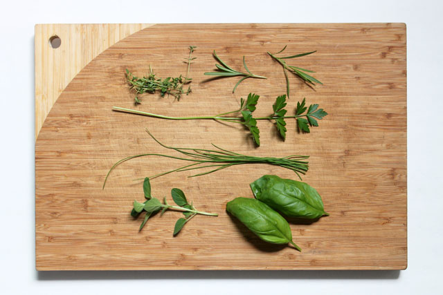 ↑ From the top left : Thyme, Rosemary, Tarragon, Flat Leaf Parsley, Chives, Oregano, Basil ↑