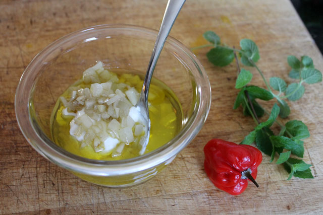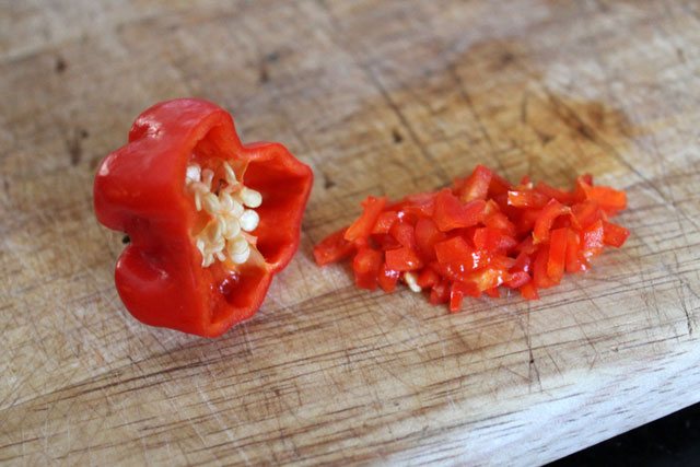 - Some minced fresh hot pepper. I used about 1/3 of a scotch bonnet. It was a very hot one, but your pepper may not be as hot, so you might need more. (optional)