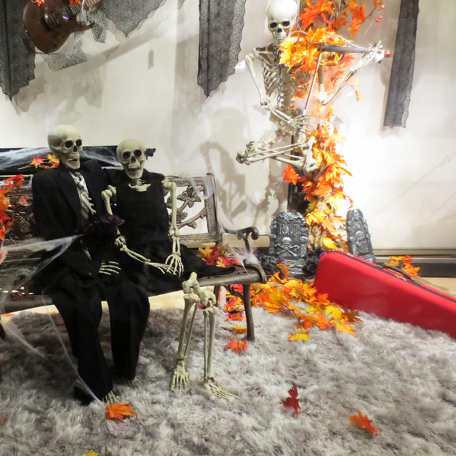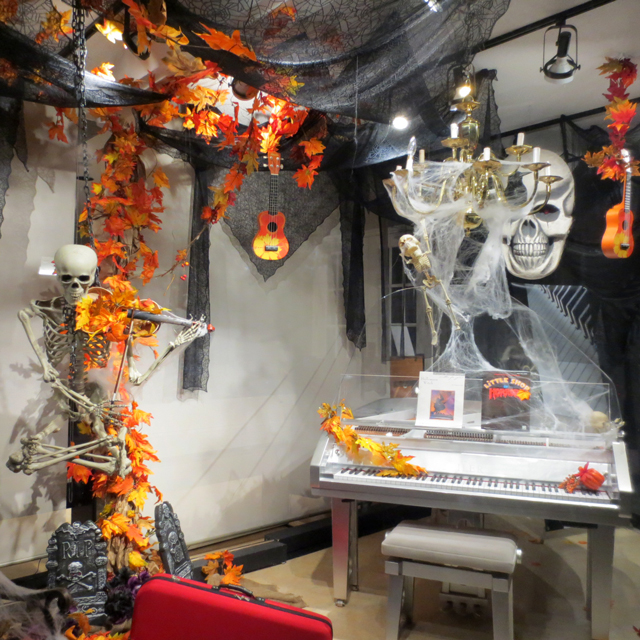 ↑ Walking to the subway station, we passed this great window display for Halloween at Reminyi House of Music. ↑