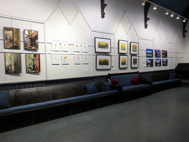 ↑ Some seating is provided in the form of the original pews that had been in the building when it was a church. ↑