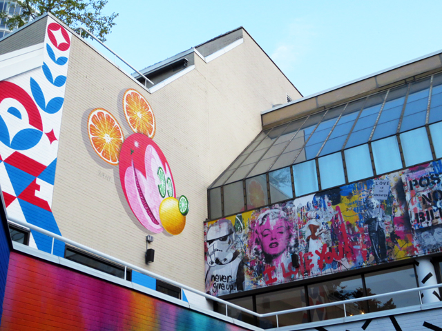 In a nutshell, what happened was that nine world renowned street artists painted murals within a courtyard, which were revealed during a three day arts festival.