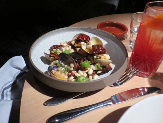 ↑ Julie had a dish which combined muscles, calamari, white beans and olives. (She let me have a taste and it was delicious, as was my pasta). ↑