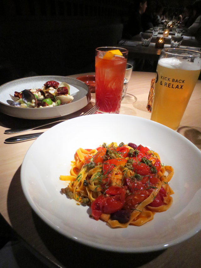 ↑ I had the Pasta Puttanesca, made with homemade noodles and a sauce which included cherry tomatoes, anchovies, garlic, capers, gaeta olives and smoked cod, seasoned with just the right amount of heat. ↑