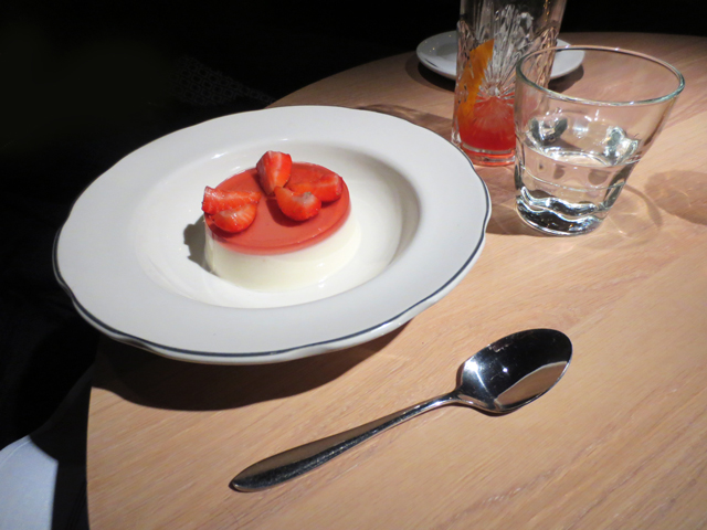 ↑ We also had dessert, “Pannacotta Alla Fragolo : ginger pannacotta and strawberry gelee” for Julie. ↑