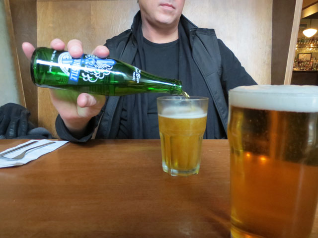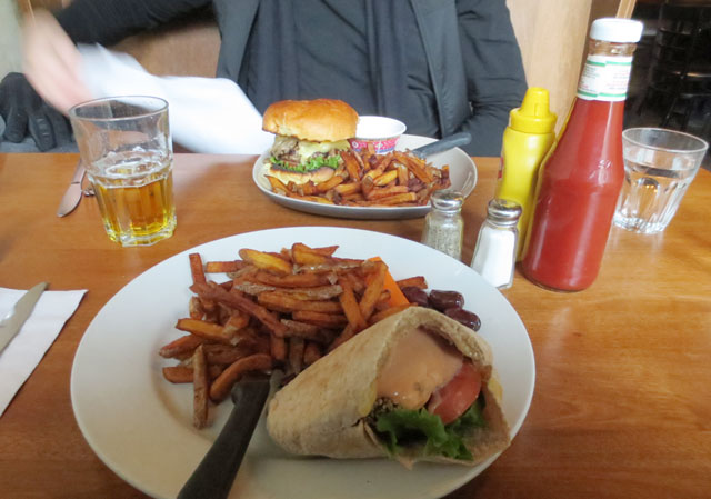 Nick went with their regular burger and to drink we had beer, Steam Whistle for him and Amsterdam Blonde Ale for me, each coming a local microbrewery, both coincidentally within a 10 minute walk from where we sat.