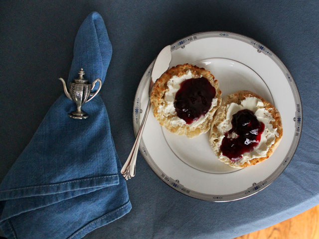 english-muffin-cream-cheese-and-cherry-jam-breakfast-on-royal-wedding-day