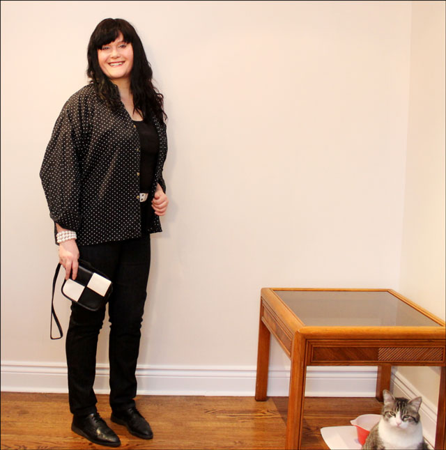 Outfit details: Jacket and necklace – Vintage. Purse – Old. Jeans – The Bay. Loafers – Calico. Tee – oops I cut out the tag but I think it was from H&M.