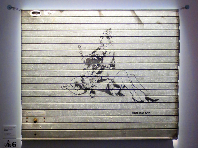 bansky-screen-print-graffiti-on-metal-door-displayed-in-toronto-exhition