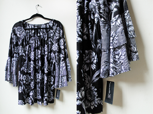 ↑ A black and white floral print tunic with flowy sleeves by I.N.C ↑