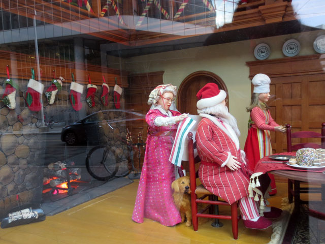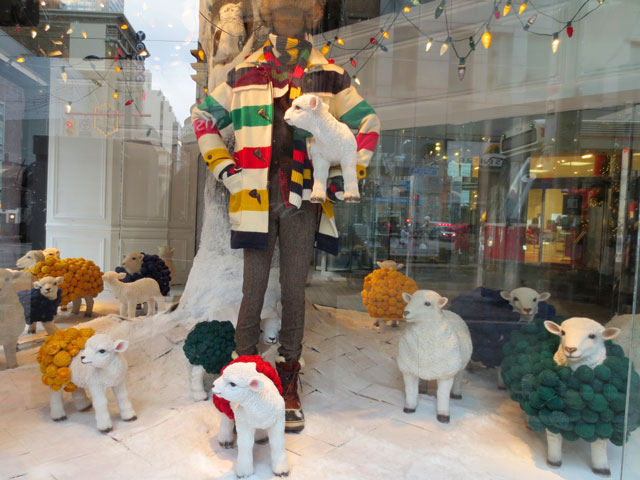 While those windows have stayed the same every Christmas for year, the others change. I was taken by the ‘balls of yarn on cute sheep’ in the corner display, at Yonge and Queen.