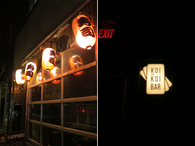 We went to a new (just over a year old) place called Koi Koi Sake Bar — it’s where the longstanding Graffiti’s Bar used to be, on Baldwin Street at Kensington Avenue.