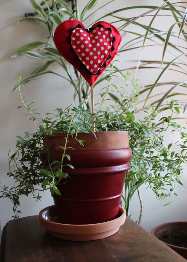 The cotton hearts on sticks are something I made for Valentine’s Day a couple of years ago (and showed on the blog here). They also do double duty as decorations for anniversaries.