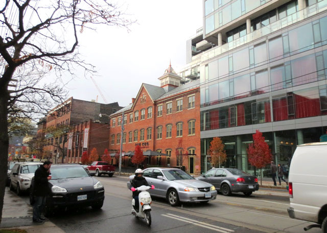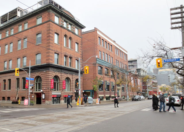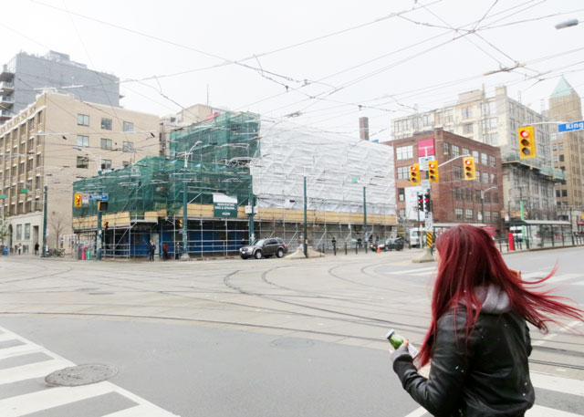 The store we went to is at Spadina and King street, where I was excited to see this building under scaffolding. It was built as a hotel in 1873 and over the years had begun to show its age. (I posted about it here so you can see what it looked like. Now it looks like it is going to be completely refurbished, which is excellent news. I so look forward to seeing what unfolds there.