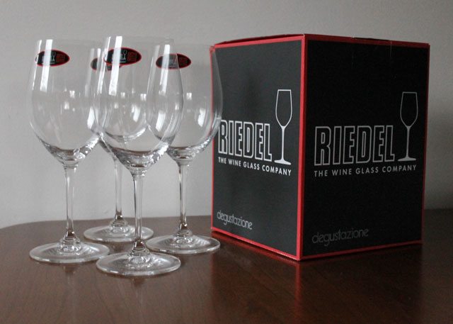 Our new glasses. They are Riedel ones, especially shaped for red wine …