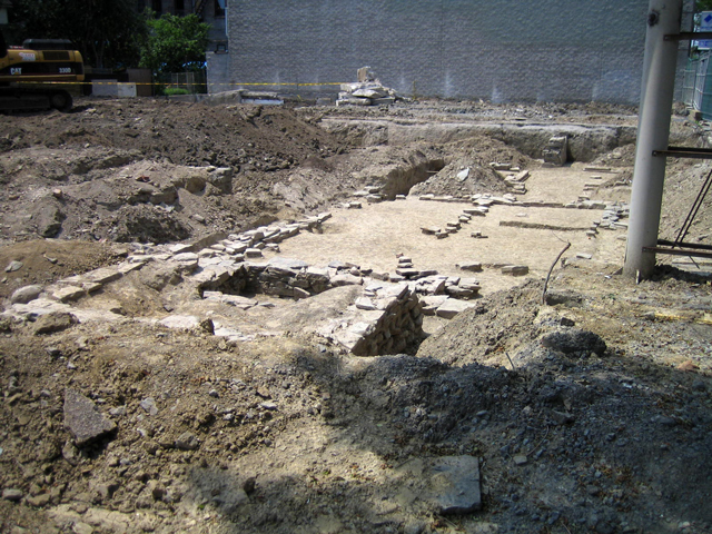 Prior to doing any digging in Toronto, a good look at the site has to be taken beforehand, in the form of an archaeological excavation. While this lot had previously been home to what was the last motel standing downtown, The Executive Motor Hotel, estimated to have been built in the 1950s, it was first the site of an estate that had been built in 1850. These photos show the remnants of that old home.