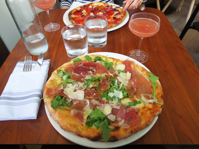 ↑ We both had a pizza. I love arugula but had never tried it on pizza before, so chose the “Parma : fior di latte (a semi-soft, fresh cheese), caramelized onion, arugula, ham, Parmesan” . It was delicious. And very plentiful. We both ended up taking half our pizza home, a request that was very graciously handled by the friendly server. ↑