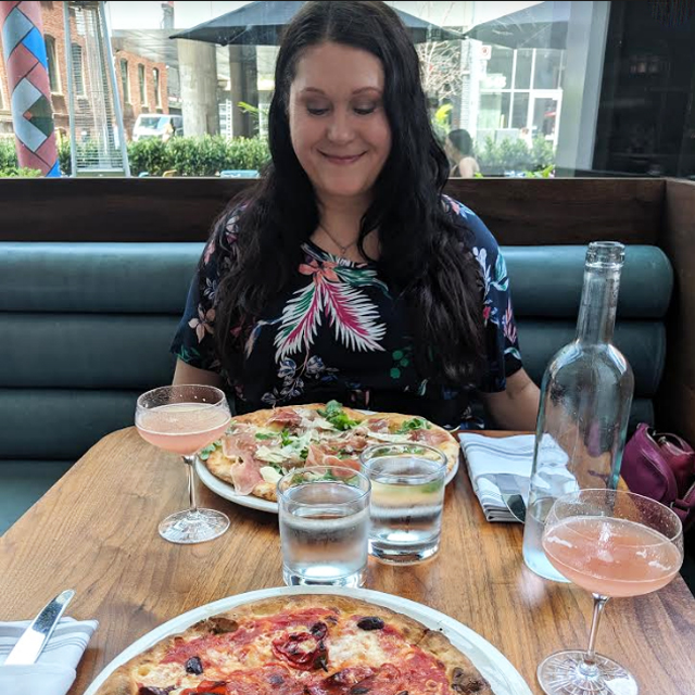 Follow-up : I laughed out loud when I read Julie’s note and saw this photo she took with her phone and sent over after our lunch together: “Not only do you look great in this photo, you look very happy about that pizza!” It’s safe to say that I didn’t realize I was being included in the picture! haha