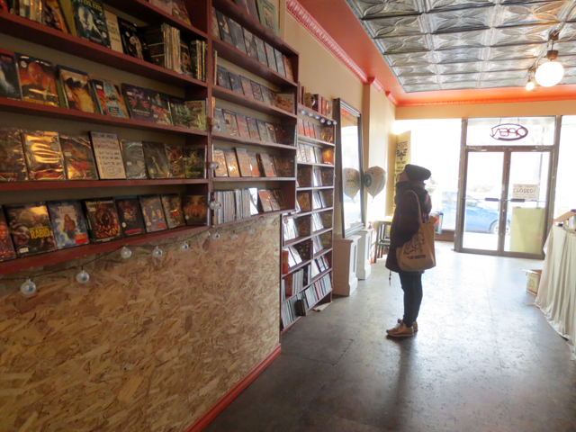 Right next door to that we popped in to have a look at Eyesore Cinema, who were just settling into their new space after moving to Bloordale from Queen Street West. They rent and sell movies, but certainly not your run-of-the-mill choices. To quote BlogTo here, “Eyesore Cinema is fiercely disdainful of most Hollywood fare. Owner Daniel Hanna has lovingly curated Toronto’s finest selection of obscure cinematic oddities, for rental and purchase.”