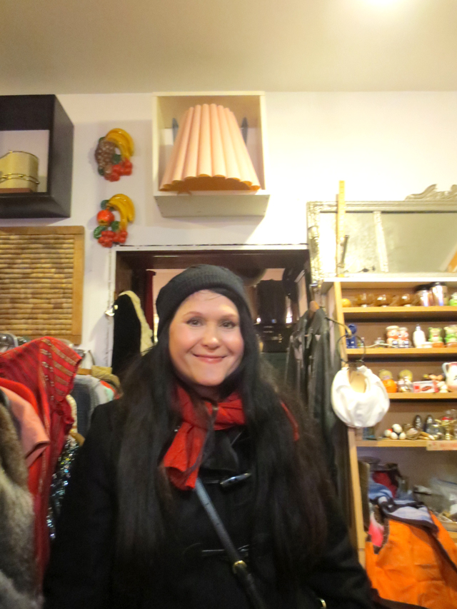 A few steps from there we found our next destination, an awesome vintage shop called Ransack the Universe. What a place! I found something that I’m always on the look out for but which are quite elusive — a vintage printed cotton handkerchief. My eyes tend to water easily so I always carry one with me, but they’re pretty hard to find. The one I got was unused vintage, and was $5, a fraction of what I usually pay for them on ebay. Meghan found a beautiful pair of leather gloves, also unused.