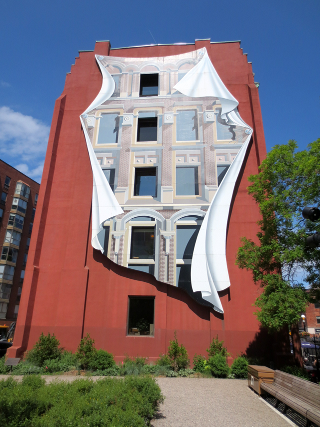 ↑ On the back of the building, there’s this trompe l’oeil mural created by Canadian artist Derek Michael Besant, which makes the wall appear to have more windows than it does. Something I hadn’t noticed before, was that it’s a painting of the building that’s right across the street to the south, called the “Perkins Building”. ↑