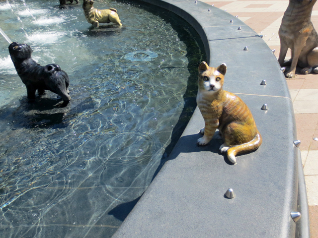 I’m sorry I missed this, but the cat is looking towards an extra piece, two small birds perched on the arm of a lamp post located three metres away. Now, I feel I must go back to see that part!