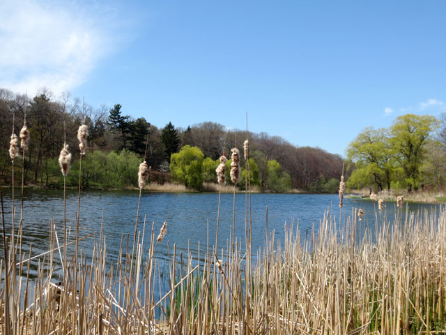 I walked along the bank of Grenadier Pond. There’s a tale about how it got its name : while defending the city from the Americans during the War of 1812, a group of British grenadiers fell through the ice on the pond and drowned. Their bodies were never found, due to the fact that the pond is so deep. Its depth is apparently undetermined to this day because it can’t be measured, due an seemingly endless layer of mud. Then again, there is a second theory about how it got its name, which is a lot less morbid : during the war the grenadiers would go fishing there during their down time.