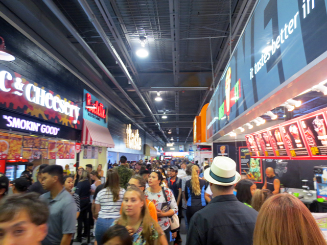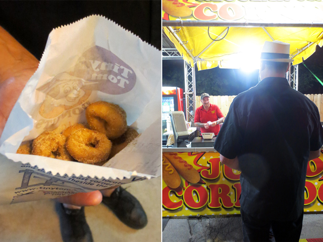 ↑ It was dinnertime when we got there, so began in The Food Building, where we shared a serving of Pierogies and some fried chicken that came in a big waffle cone. It was jammed in there, so we had that to start and then ventured out. ↑