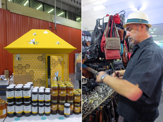↑ Shopping is part of the fun and we each ended up getting something — I got some beeswax votive candles at a booth with all things bee related (including some live bees in a hive-box). Nick got a good leather belt. ↑