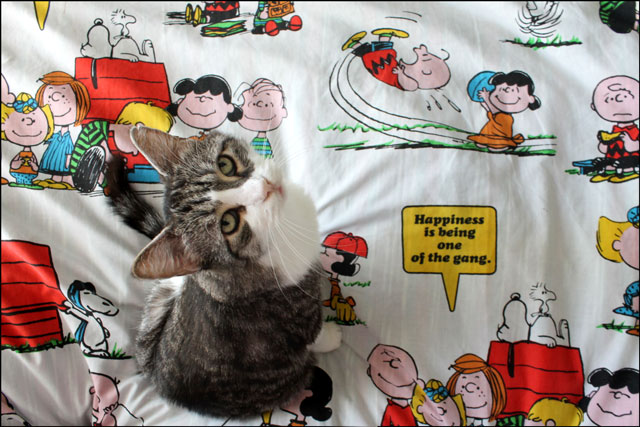 They were very sweet, purred loudly, and even let me pick them up, never showing a claw. Their lightness of weight and tiny chests made me realize that, while our Eddie is a normal sized adult cat, he is a big boy!