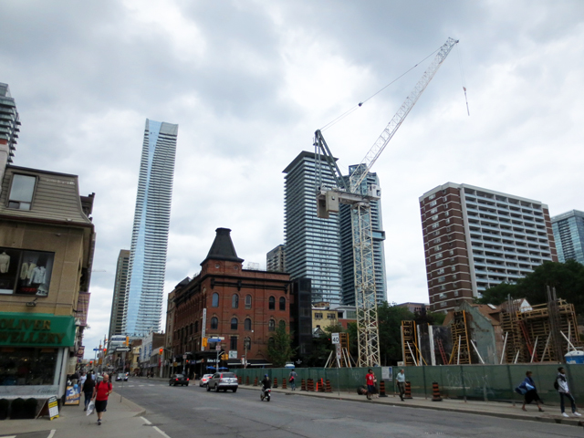 ↑ By this time, the sun was going down. This is their view, with Yonge and Bloor being towards the right. The tall building would be the one shown in this post from last summer, about the old and new buildings on Yonge Street. ↑