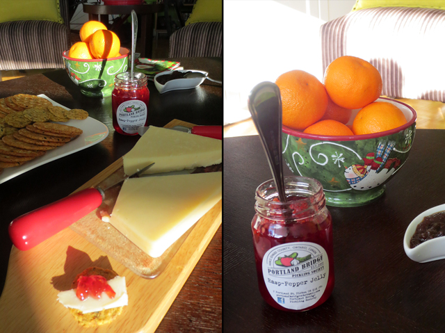 ↑ This small-batch artisanal “Raspberry-Pepper Jelly”, made west of Toronto in Prince Edward County, by Portland Bridge Pickling Society, was delicious. ↑