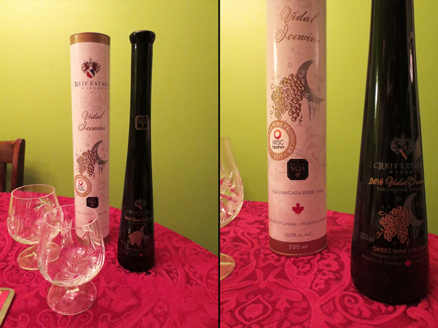↑ Another treat was in store, when Leslie shared a bottle of Icewine that she’d received as a gift, with us. It was made in the Niagara Region to the west of Toronto, by Reif Winery.