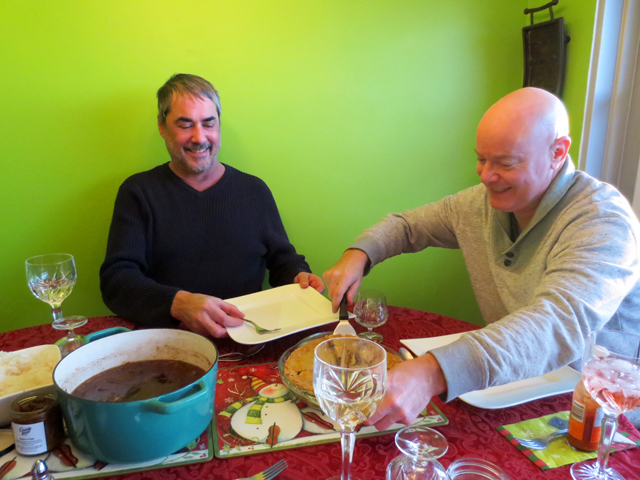 ↑ We brought along a Tourtiere that Nick had made at Christmas. He’d made two and this one had been partially baked and frozen. We put it in the oven to finish cooking, when we arrived.